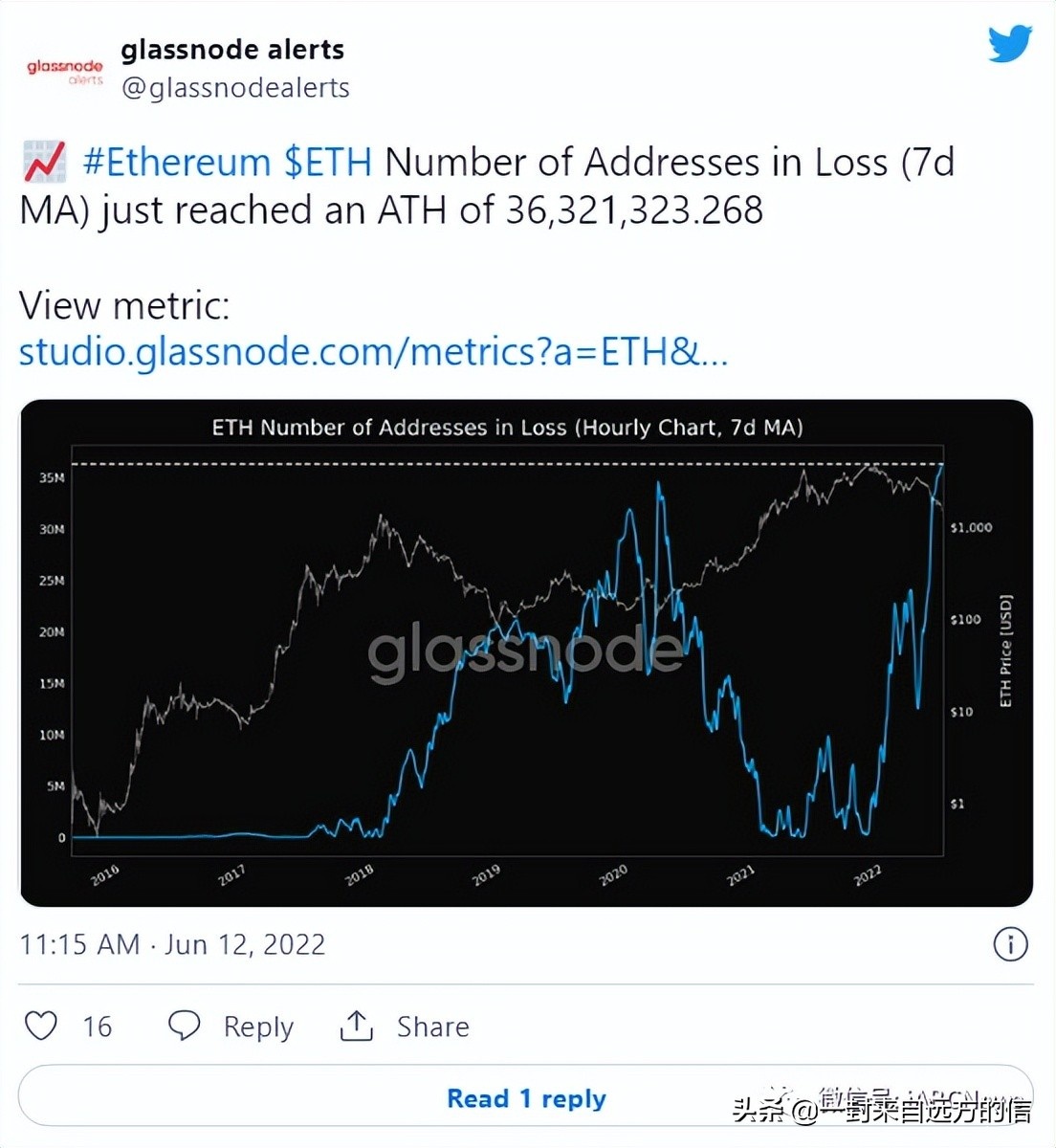 此外,正如海外网站链上的警报账户 6 月 12 日所揭示的那样,亏损的持有人明显倾向于亏损。这是随着价格继续做空交易,以太坊卖压增加的后果。