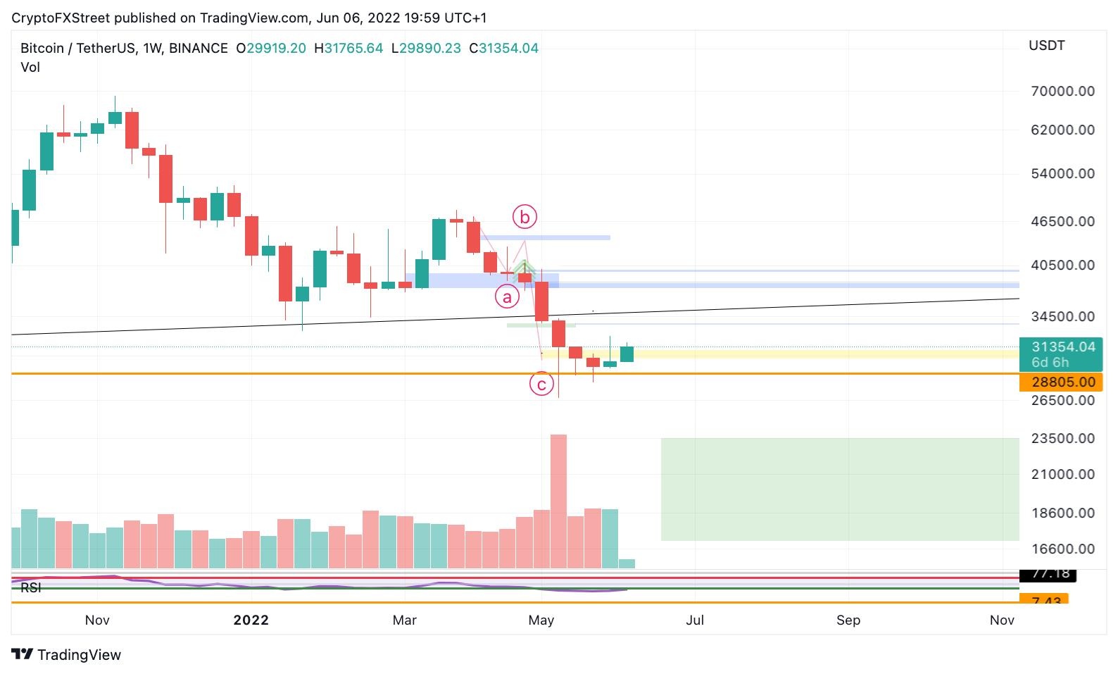 美元是新的无效水平。如果突破 22,000 美元,下一个目标将是 17,000 美元,导致当前 BTC 价格下跌 44%。