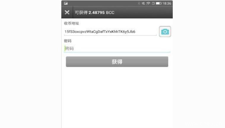 3.选择相对应的账户地址,输入比特派BCC地址及密码。