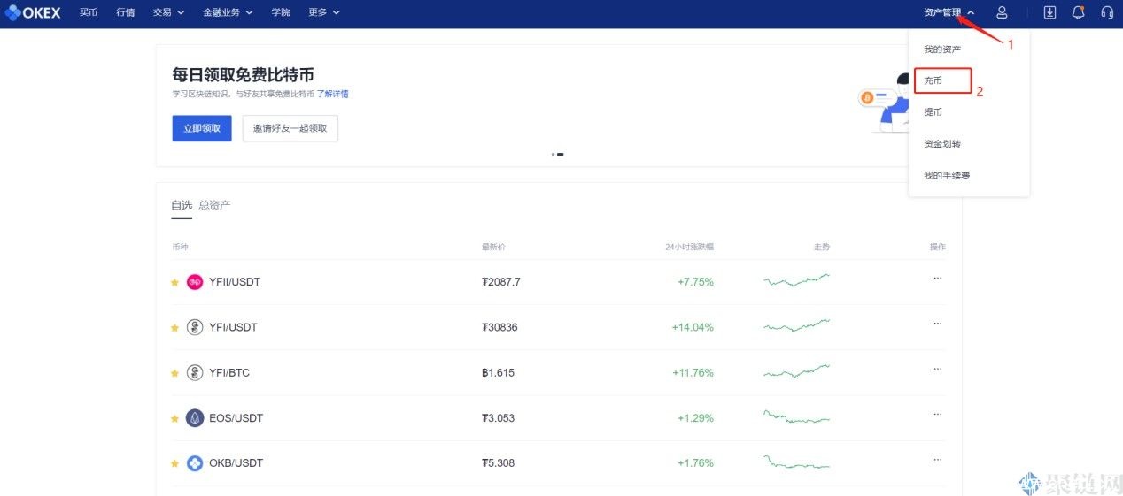 1 、打开欧易OKX官网(https://www.ouyicn.rocks/),点击右上方资产管理,选择充币进入充币页面。