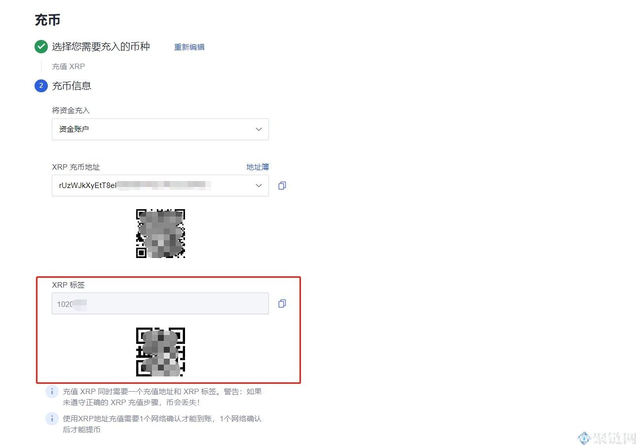 3. 某些币种需要填写标签,例如XRP,在充值地址的上方会标注需要填写的标签,通常是一串数字,充值这些币种时必须需要填写充值地址和标签,否则币会丢失。
