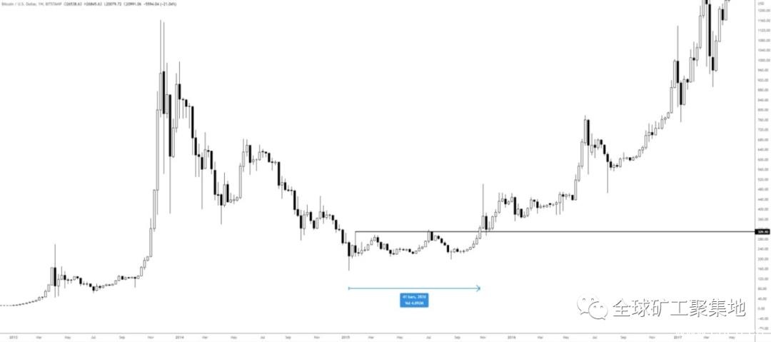 Altcoin Sherpa 指出的最长累积期是上图中概述的 287 天跨度。提供的其他示例包括 2018 年 11 月至 2019 年 4