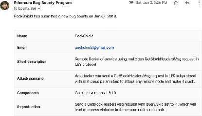6月28日凌晨3点,北京时间 在刚刚结束的硅谷Blockchain 新手如何炒钱来推广和卖钱 Connect Conference会议现场,区块链安全公司PeckShield披露可能导致以太坊的披露geth节点休克或崩溃的安全性BUG。PeckShield将披露的BUG命名为“Ethereum Packet of Death(EPoD)”,即“致命报文”,攻击者可以发送恶意报纸geth攻击节点。geth它是以太坊主流的官方客户端,被许多重要节点采用,这意味着一旦攻击者使用它BUG所有向以太坊都受到影响geth对节点进行攻击,所涉及的相关节点随时可能停止。对于整个以太坊网络,这样BUG恶性竞争将扰乱市场秩序,造成不可估量的严重损失。