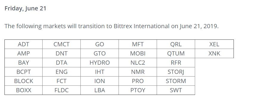 Bittrex宣布下周终止在美国提供32种加密货币交易服务,美国加密货币交易中心Bittrex最近发布的消息指出,自6月21日起,其国际平台将不再为美国用户提供32种加密货币(如图所示)的交易服务Bittrex International新手炒币入门基础知识图用户不受影响。