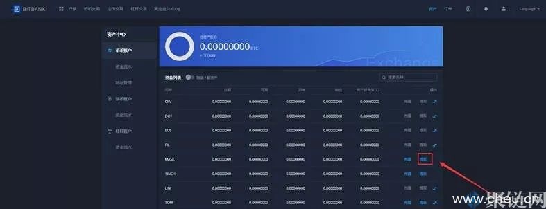 1.登录BITBANK交易所官网,登录你的账户,点击资产中的币币账户。
