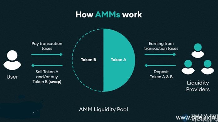 每次有LP代币被销毁,就会根据确定性算法 (Deterministic algorithm) 启动价格调整,这样的机制,也就是自动化做市商 (Automated Market Maker,AMM)。
