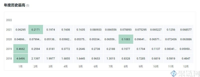 2017年7月6日PAY币出现历史最高价为86.2599美元,2021年2月PAY币出现最高价为0.2171美元,2020年8月PAY币出现最高价为0.1083美元,2019年1月PAY币出现最高价为0.4662美元,2018年1月PAY币出现最高价为4.6496美元。