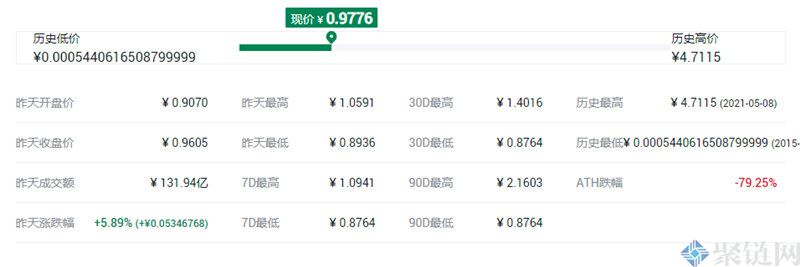 2021年5月8日狗狗币出现历史最高价为0.7402美元,2015年5月7日狗狗币出现历史最低价为0.0000854744美元。