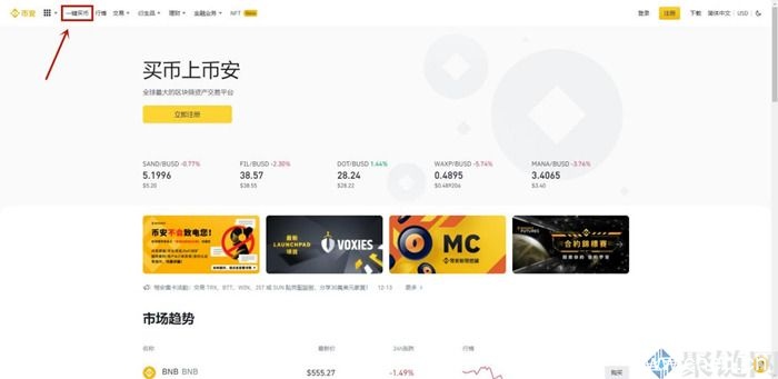 1、打开币安交易所(http://www.yuanhehe.com/yhh/ios.html (注意:国内用户目前仅支持国外邮箱注册!)),进入后点击首页一键买币