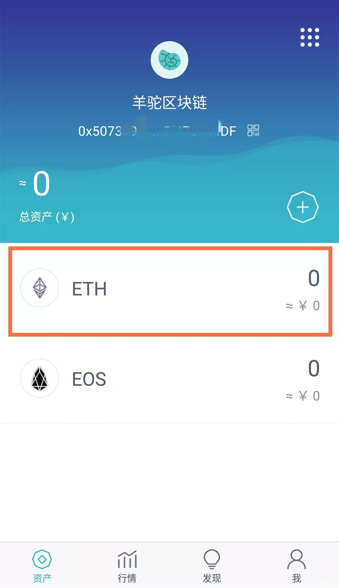 添加你所要保存的数字资产种类,如ETH、EOS 注意:imToken钱包只可保存基于以太坊系的代币,BTC等非以太坊系代币不可保存