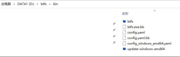 3、将btfs文件(第二步重命名的文件)复制到d:btfsbin(或者c:btfsbin,没有这个目录。自己创建)