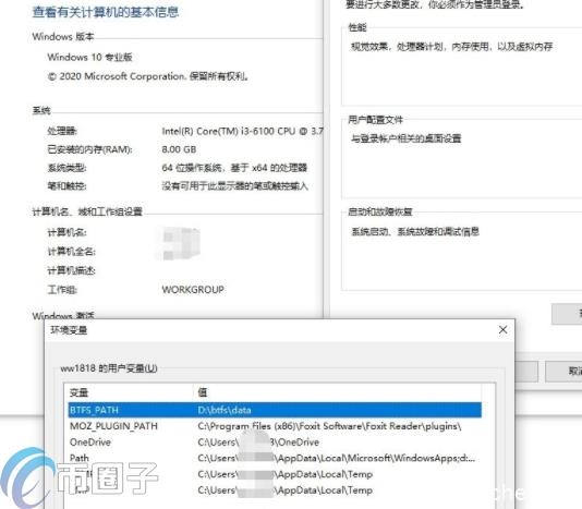 4、修改环境变量,我的电脑右键属性–高级系统设置–环境变量—xxx的用户变量,新建—-变量名:BTFS_PATH