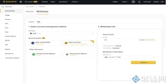 4、选择需要提取的法币以及支付方式。支付方式选项取决于所选货币和地区。