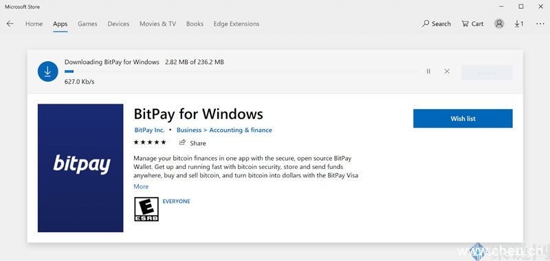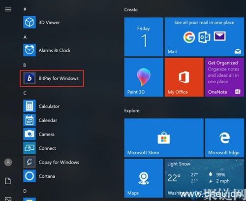 安装应用程序后,您会在开始菜单上找到BitPay应用程序。