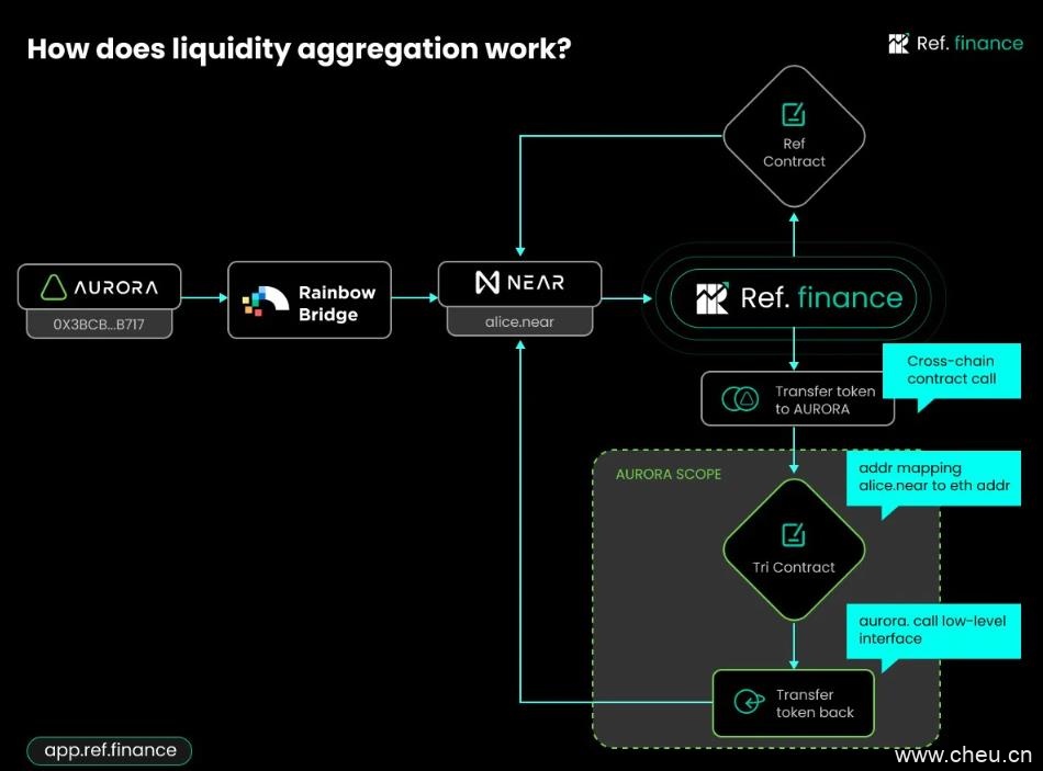 Aurora 和 Near 生态内的流动性,进行最优价格路径的组合,进行交易。最厉害的地方在于所有操作都在 Ref 的面板上就可以完成。这个是 Aurora