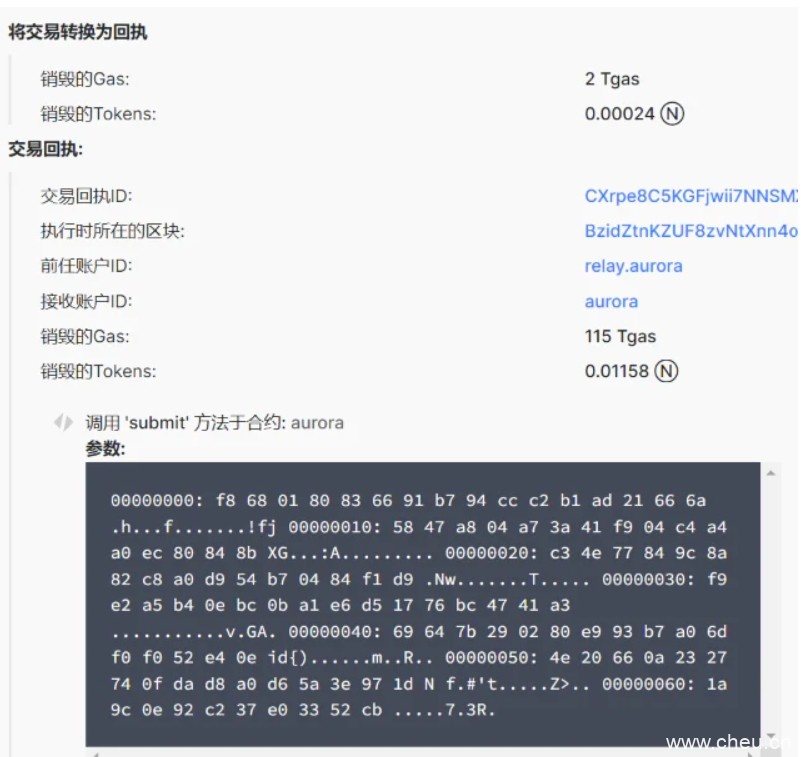 Near 节点解开包裹信息,计算交易费并将 Eth 交易信息作为参数调用 Aurora 的合约接口