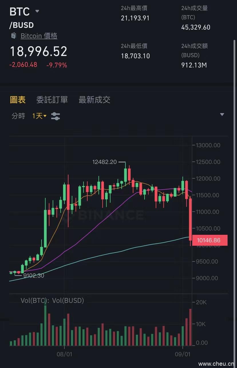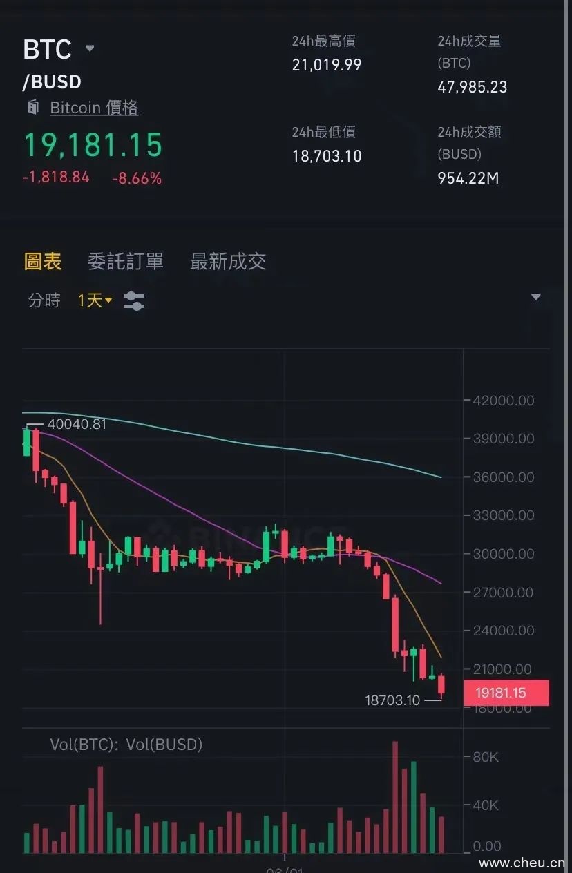币安数据显示,截至6月18日21时,比特币价格报19181美元,较上一个交易日下跌近9%。