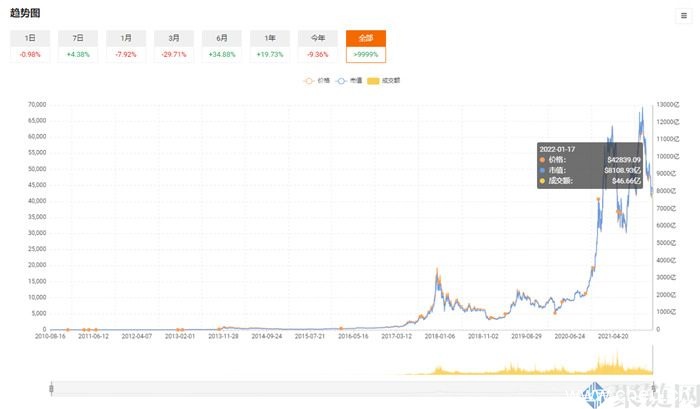当投资者看到本文的标题后应该会有一些疑惑,比特币作为一个数字货币,该名称的由来是从英文BIT音译而来,并且它的性质很特殊,比特币不依靠货币机构发行,因此它的价格就不是固定的,会受到区块链减半以及新币发行等因素的影响,因此比特币投资价值也在随时变化。投资比特币会给投资者带来盈利,前提是要了解比特币价格走势,那么比特币价格走势如何分析?下面C18快讯小编就给大家介绍一下比特币价格走势历史图。