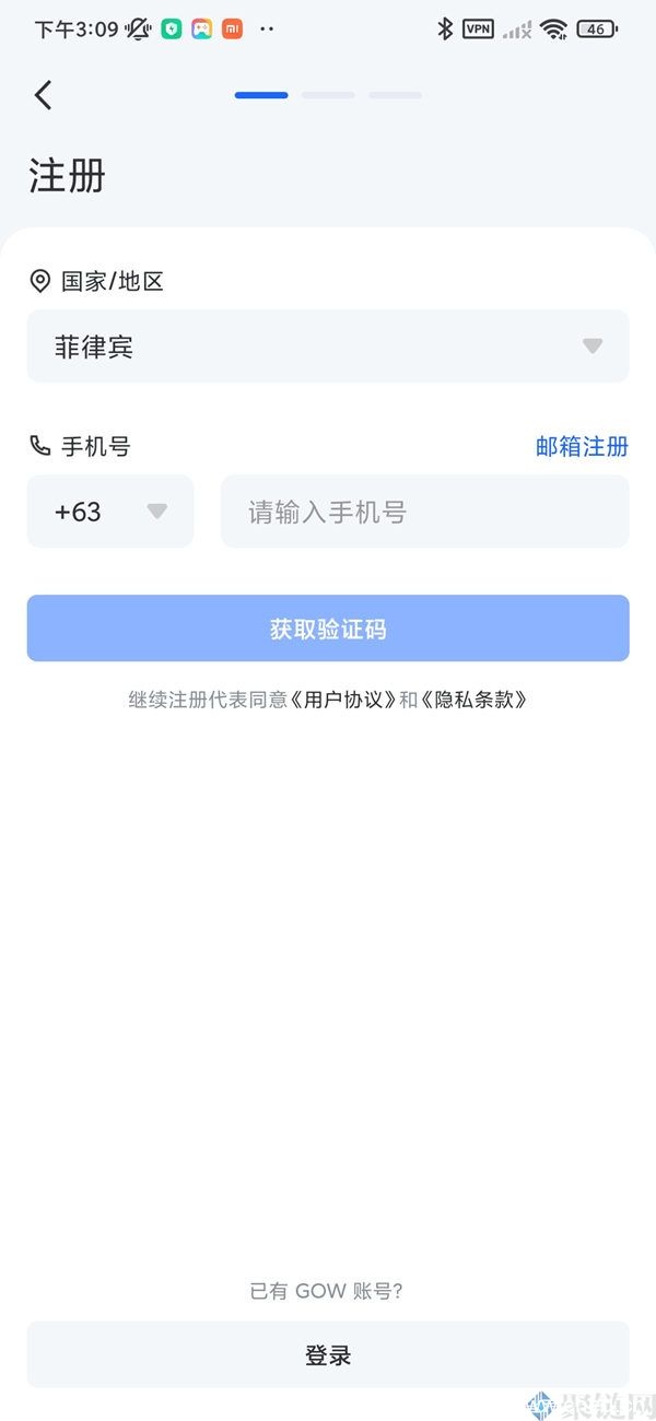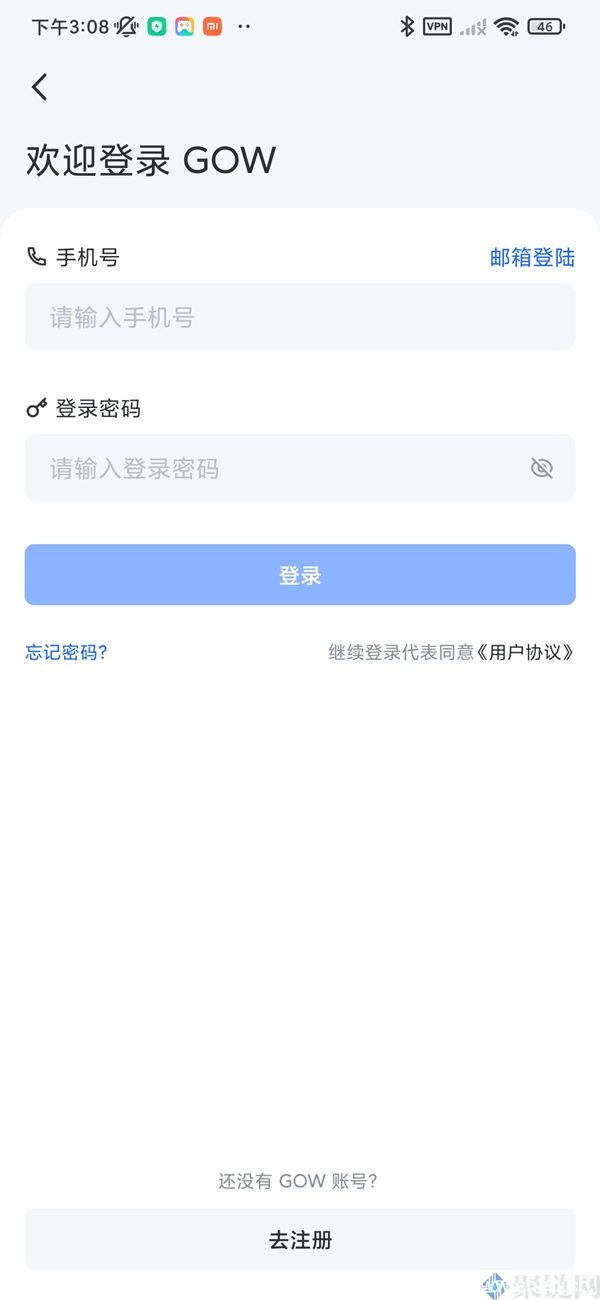 1.进入GOW App后,(在未登录状态下)点击左上角头像或底部资产按钮,选择登录按钮进入登录页面。