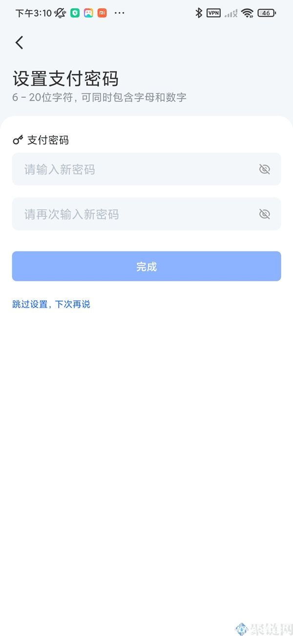 5.需要使用的到支付密码的用户可选择设置支付密码,不需要的用户可以跳过。