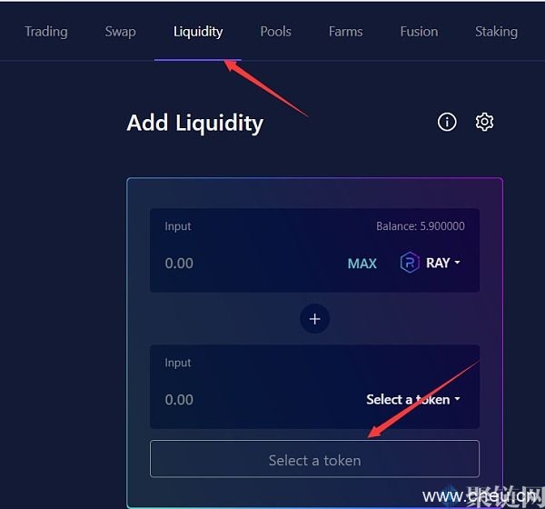 往Pool池中将上一步置换的RAY和USDT配对填好数量。
