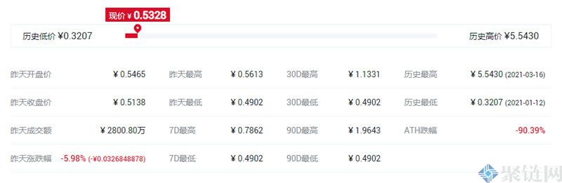 2021年3月16日OM币出现历史最高价为0.8756美元,2021年1月12日OM币出现历史最低价为0.050668美元。