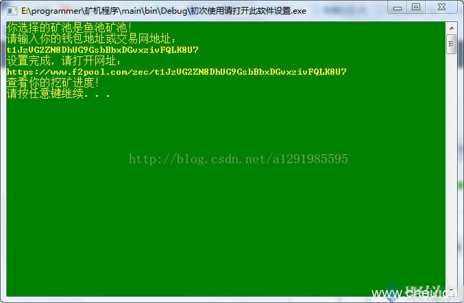 4、打开软件进行设置,选择你想使用的矿池,然后填写进去你的钱包地址;