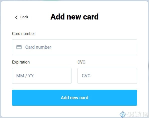 点击“信用卡/借记卡”并填写您的卡信息。完成后只需单击“添加新卡”按钮即可保存。