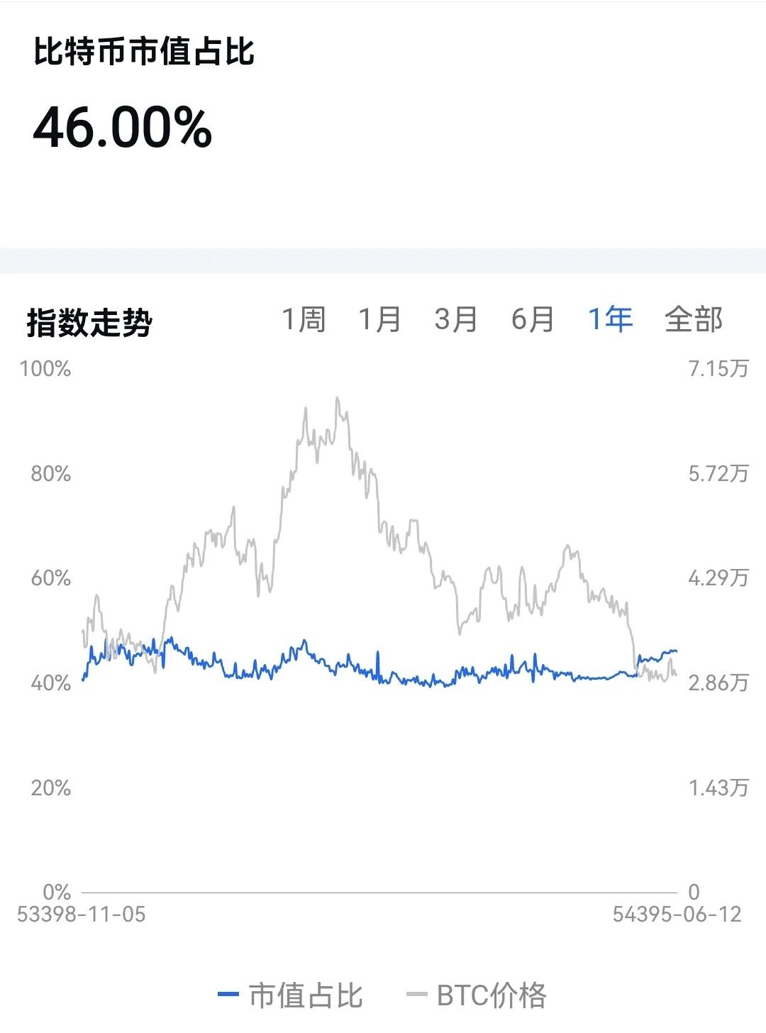 首页 币圈资讯 比特币市值突破46%,山寨币衰退,熊市周期底部是否来临