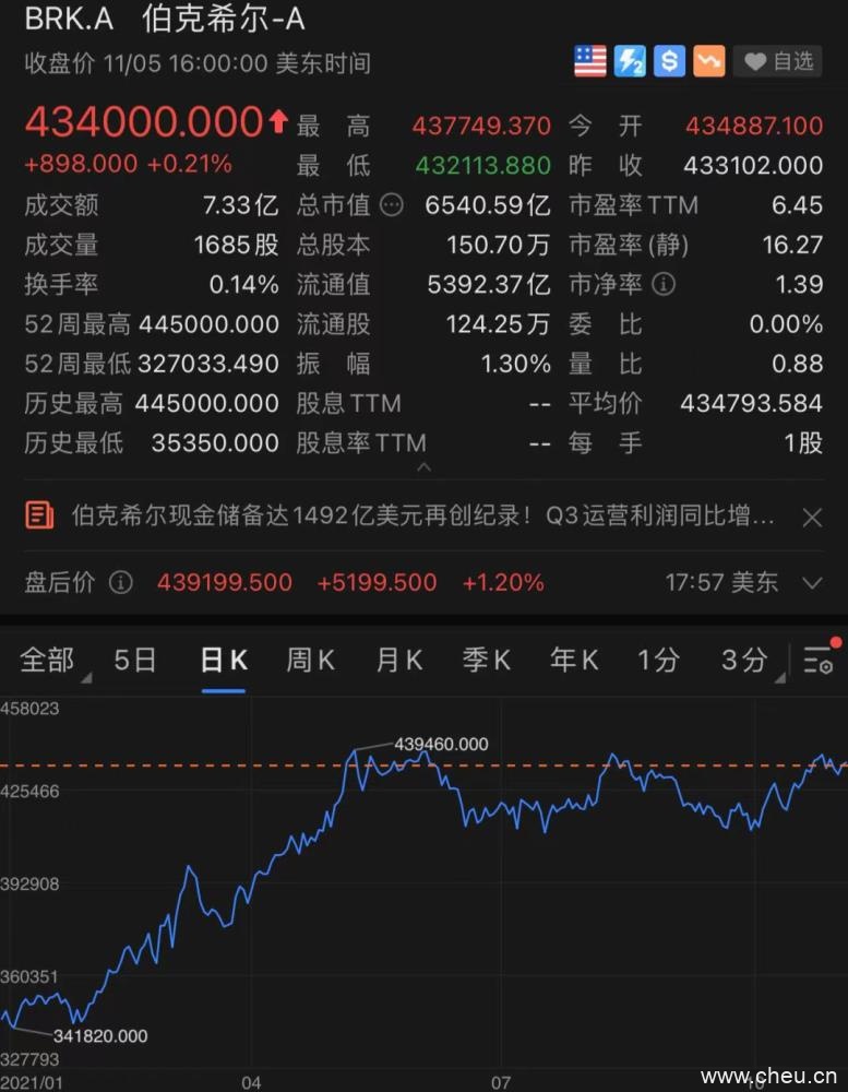 当地时间上周五收盘,伯克希尔股价报434000美元,三季度以来涨3.68%,今年以来上涨24.78%。目前市场约6541亿美元,近日更是被芯片巨头英伟达超过,从美股市值榜滑落至第8位。