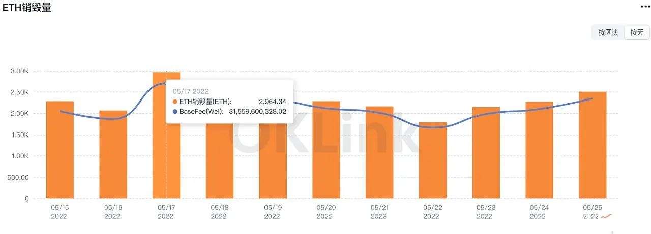 据欧科云链数据显示,当前以太坊销毁量为236.3万ETH,近11天ETH单日销毁量持续低于3000 ETH 。