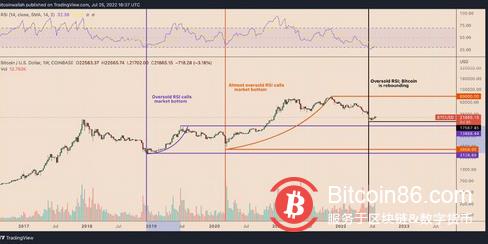 自 6 月 18 日以来,比特币价格也出现了类似的反弹,为在“超卖”RSI 信号后可能重复抛物线反弹历史打开了大门。