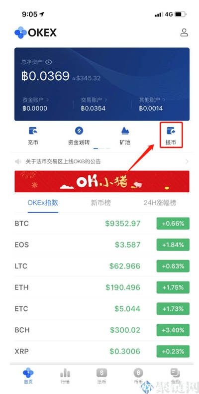 2、划转完成之后,点击页面中的提币,选择提币的币种。