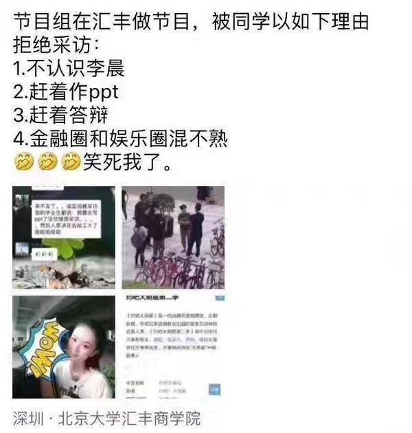 最近,因为节目组要求李晨采访一名北大学生,被该学生拒绝。
