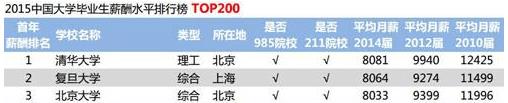 我们再来回顾一下清华北大毕业生的平均月薪: