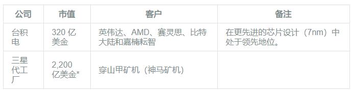 台积电(TSMC) 和三星是两家核心的半导体制造商,它们生产了所有挖矿硬件所采用的硅晶片。尤其是台积电,它在芯片组供应链中占据了主导地位。