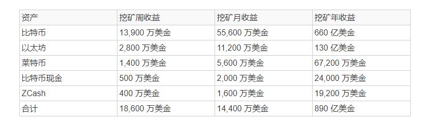 在所有基于工作量证明的区块链中,利润来自区块奖励和每个区块中包含的交易手续费。根据 CoinMetrics 在 2019 年 6 月 25 日公布的最新的挖矿奖励数据,下面是挖矿行业每周,每月,以及每年的挖矿收益。