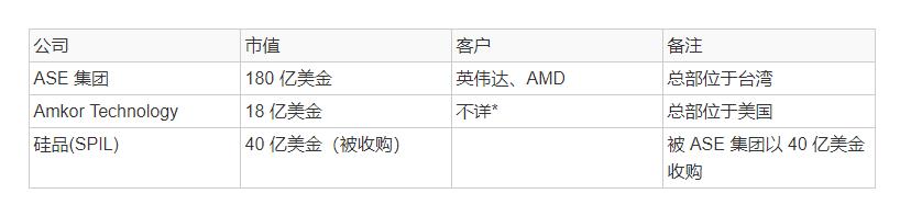 * 绝大部分集成电路公司都没有披露它们的 OSAT 供应商。