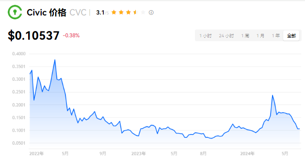 Civic 当前价格为 $0.10537。Civic 的价格在过去 24 小时内下跌了 -0.38%。目前,Civic 市值排名为第 192 名,实时市值为 $8,461.10万,流通供应量为 802,000,010 CVC,最大供应量为 1,000,000,000 CVC。我们会实时更新 Civic/USD 的价格。