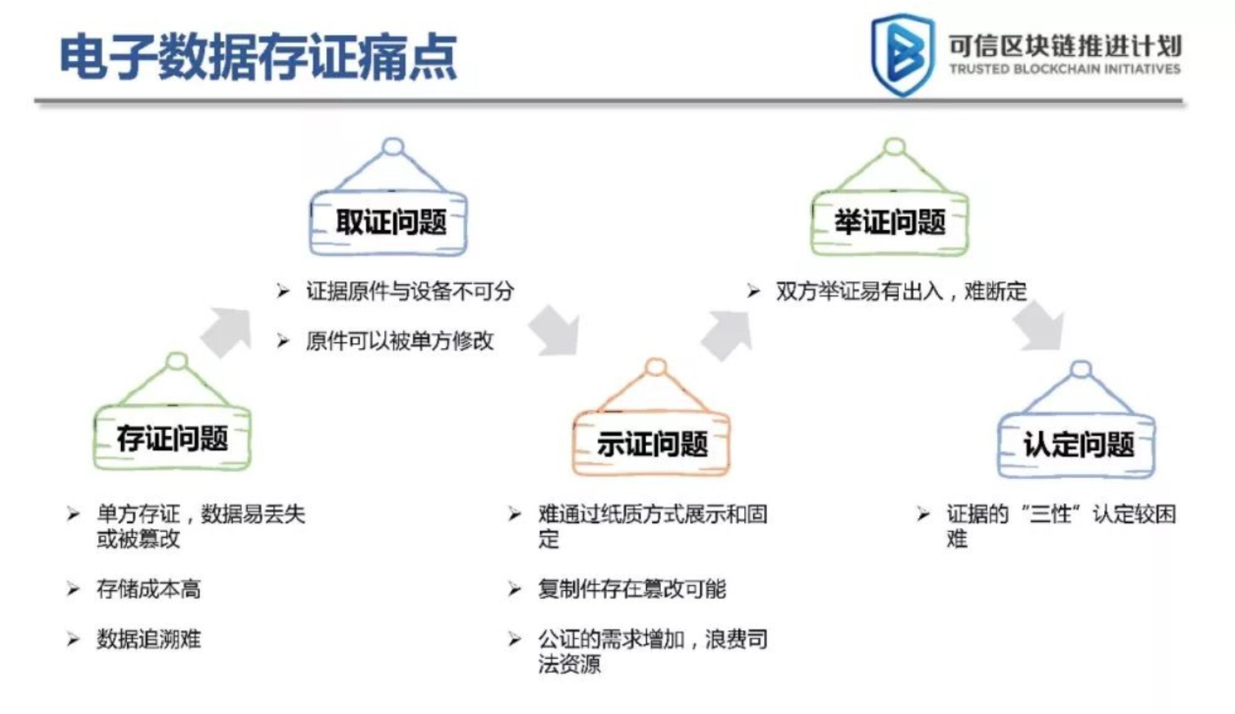 虽然电子数据存储已经逐渐普及,但电子证据的使用在司法实践中仍面临着巨大的挑战,集中在五个方面:一是集中存储方法缺乏防篡改能力,难以区分证据是否被篡改;第二,在收集证据时,如果原始证据与设备分离,证据的有效性将大大损失;第三,在证据中,通常很难通过电子渠道打印到证据中,不仅可能损失部分内容,而且识别成本高;第四,在证据中,双方的证据内容很容易不同,也很难判断是非。因此,法院对电子证据的看法“三性”识别变得非常困难。