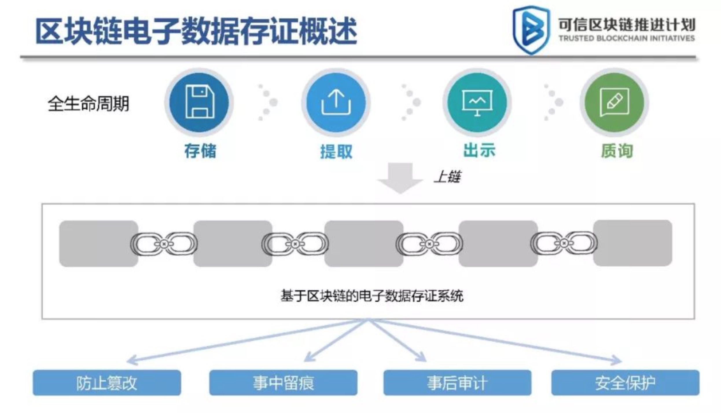 白皮书从浅到深介绍了区块链电子数据存储的特点和系统设计原则。从电子数据存储的发展现状出发,阐述了区块链电子数据存储与证据识别的关系,指出了区块链与电子数据存储的结合点和意义,并表达和总结了区块链存储系统的整体设计和关键技术。