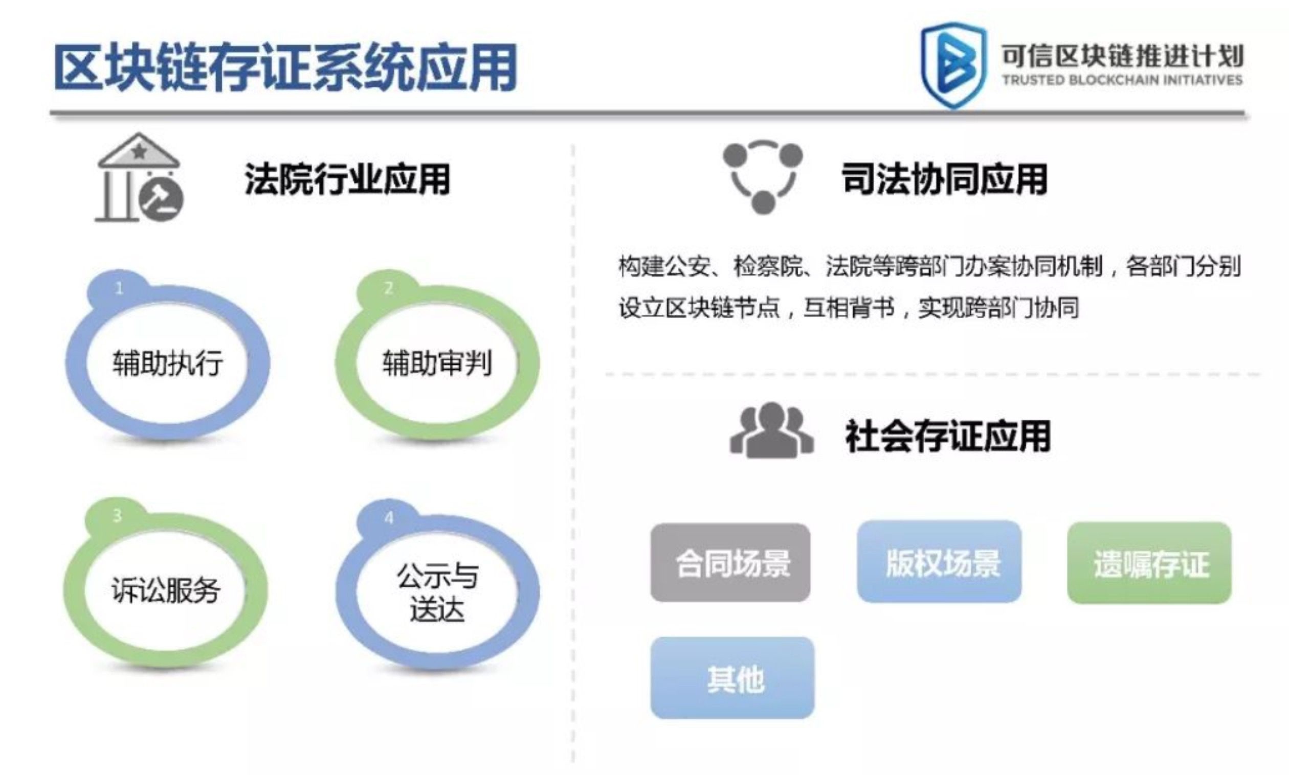 在应用场景中,白皮书分为三个部分:法院行业应用、司法协同应用和社会存证应用。