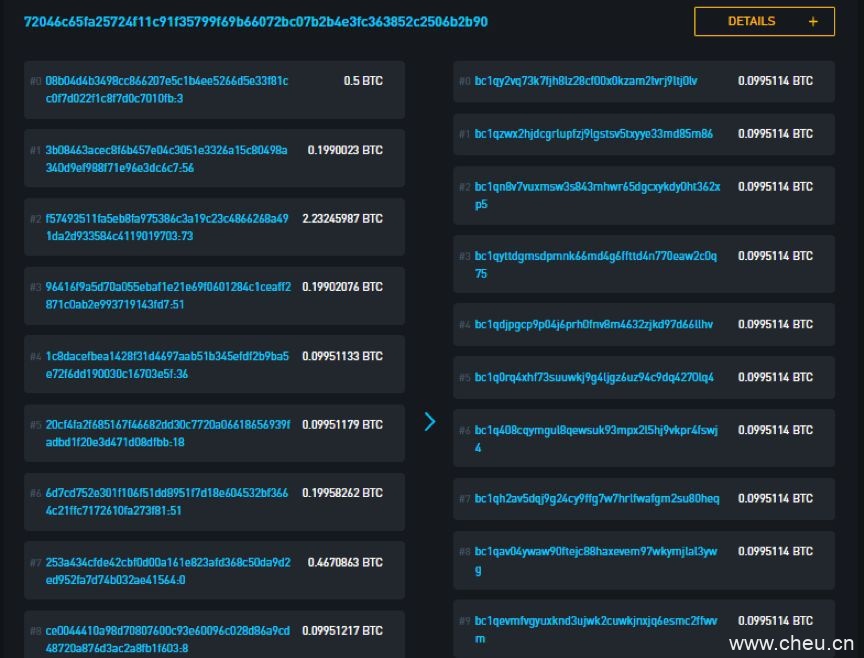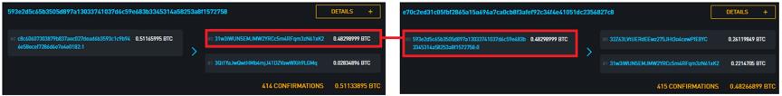 区块链浏览器WalletExplorer已经将这两个地址固定在162787个地址的群集中。