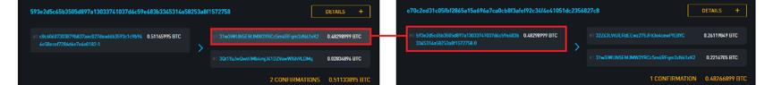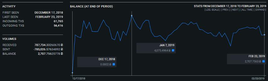 类似地,31w3iWUN5EMJMW2YRCc5m4RFqm3zN61xK2(https://blockstream.info/address/31w3iWUN5EMJMW2YRCc5m4RFqm3zN61xK2)这是一个经常使用的2/3多个签名地址。在写这篇文章时,大约有2700枚比特币(价值1060万美元)。更先进的区块链工具(如oxt.me)它甚至可以随着时间的推移绘制钱包余额,并以近似的准确性显示其最常见的活动。