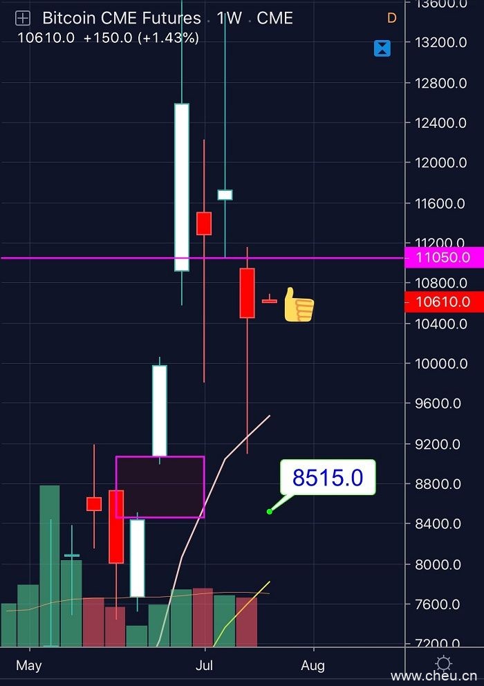 另一位受欢迎的加密货币分析师 Chonis Trading 在最近的一条推文中谈到了价格缺口水平,并指出比特币本周没有形成任何期货缺口,这意味着8515美元的期货价格缺口仍未填补(如下图所示)。
