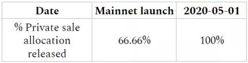 私募:14%,私募价格 0.006 USD,按以下时间解锁