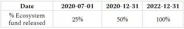 生态基金:18.5%,主网上线不解锁,按以下时间解锁